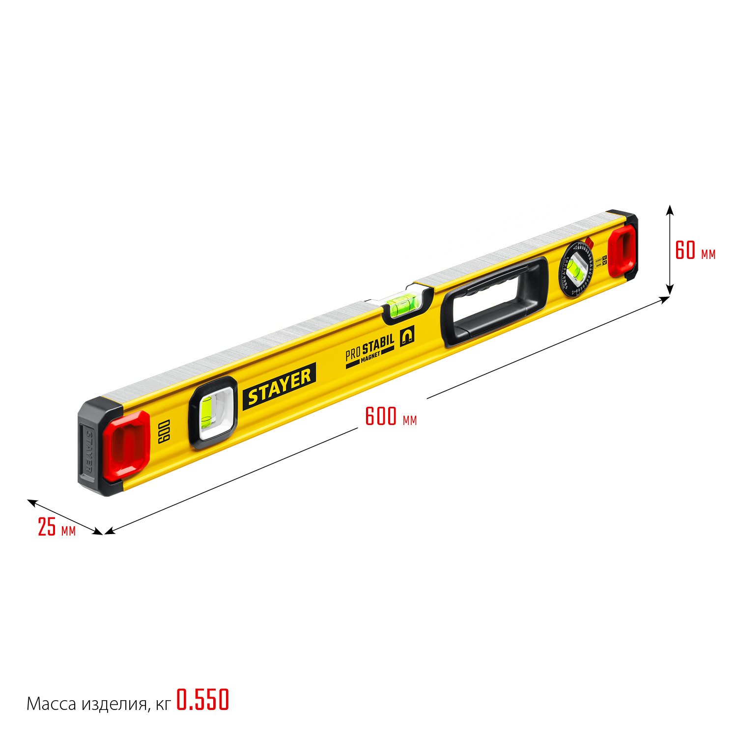 Уровень строительный Stayer / Стайер Professional магнитный, с двумя фрезерованными поверхностями, 3 глазка из ударопрочного акрила, алюминиевый, 60см / измерительный инструмент