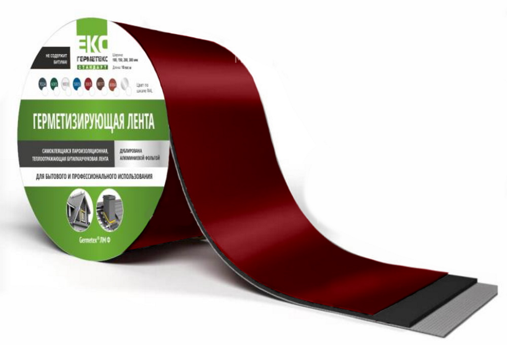 Самоклеящаяся, бутилкаучуковая, герметизирующая лента, дублированная алюминиевой фольгой. Предназначена для герметизации всех видов примыканий кровельных материалов: к поверхностям дымоходов, мансардных окон, коньковых соединений (включая сотовый поликарбонат) и других кровельных конструкций.