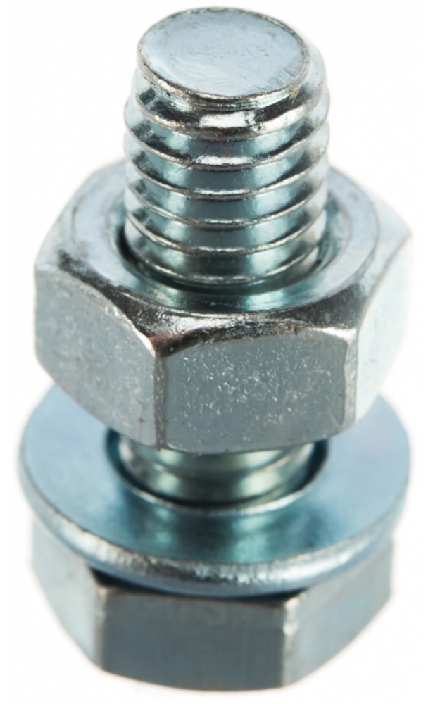 Болт Стройбат с гайкой и шайбой метрический из оцинкованной стали, DIN933, 6×16мм, 8шт. / крепеж