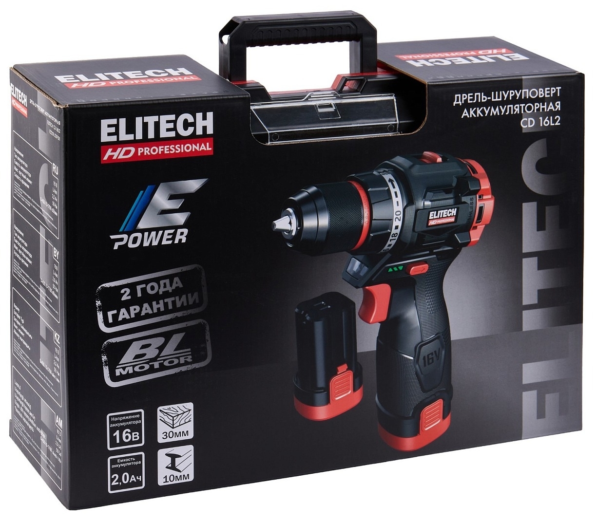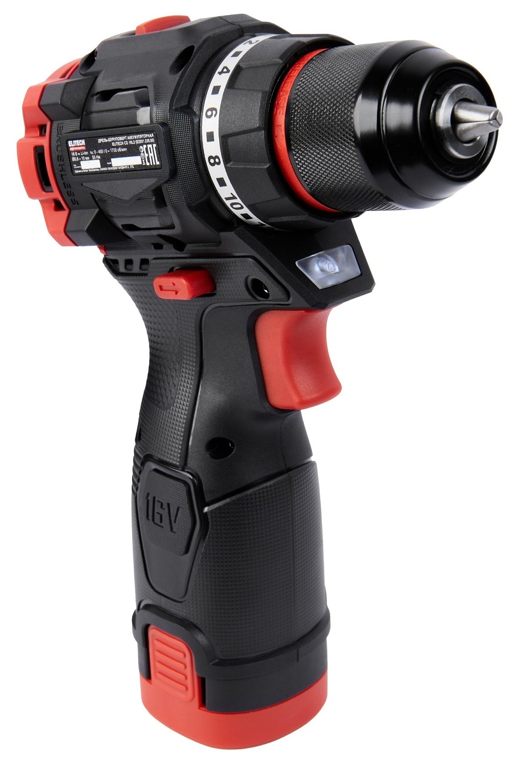 Дрель-шуруповерт аккумуляторная ELITECH / Элитеч CD 16L2 с подсветкой, 2 аккумулятора, в кейсе, 16В, Li-Ion 2А/ч, 55Нм, 2 скорости / электроинструмент