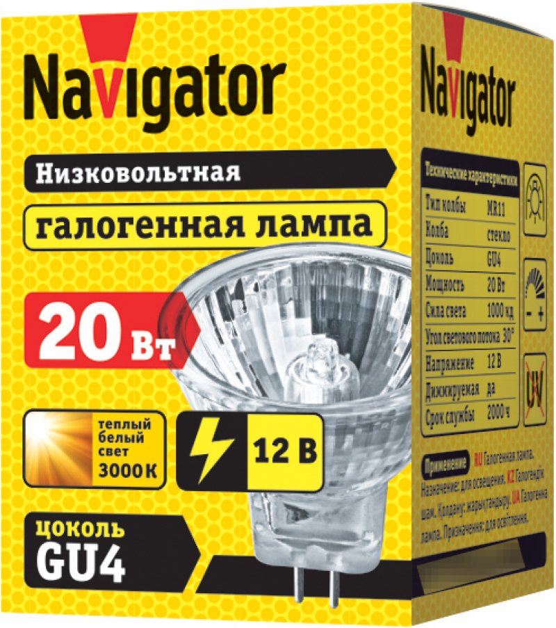Лампа галогенная Navigator имеет форму рефлектора. Создает поток теплого белого света. Легко устанавливается в патрон. Предназначена для работы без понижающего трансформатора.