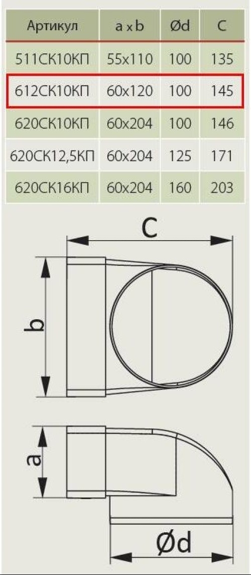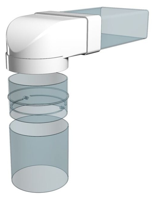 Соединитель угловой 90° Era 612СК10ФП используется в пластиковой вентиляции. Может соединять прямоугольный воздуховод 60х120 мм с круглой вентиляционной решеткой диаметром 100 мм напрямую. Также может использоваться для соединения с круглым воздуховодом через соединитель Эра 10СКП. Является одним из элементов системы пластиковых воздуховодов для перемещения воздуха в приточно-вытяжной вентиляции жилых или коммерческих помещений.