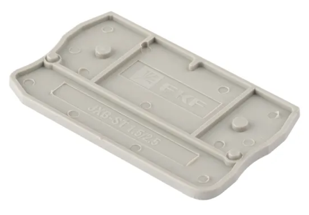 Создать безопасное соединение проводов можно только с использованием специальных деталей. К ним относится и заглушка EKF для ST-1.5/2.5. Она представляет собой торцевую пластину для закрытия токоведущих частей последней клеммной колодки.
