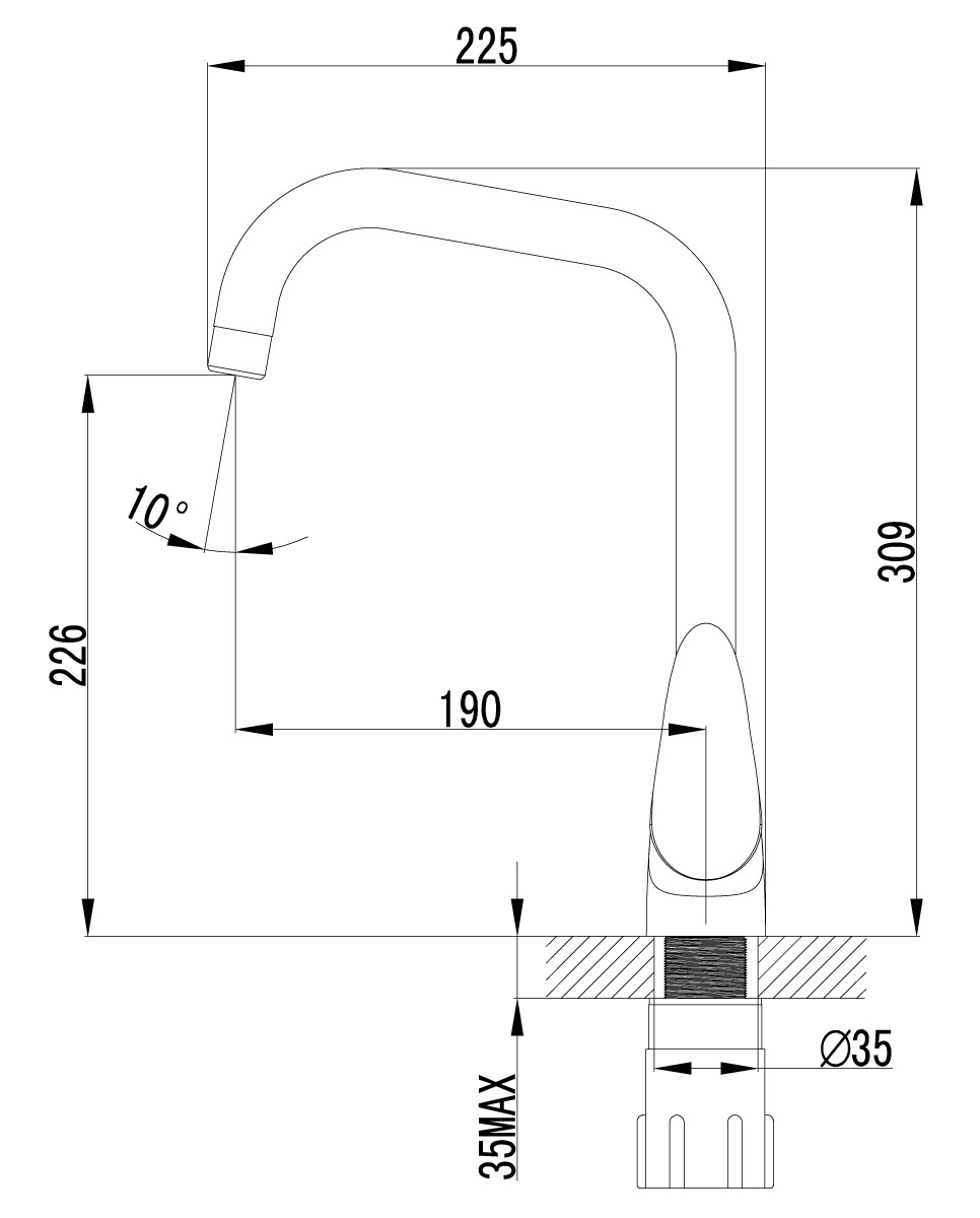Смеситель Lemark / Лемарк Pramen для кухни, однорычажный, из латуни, цвет хром, излив 226мм, под отверстие диаметром 35мм / сантехника