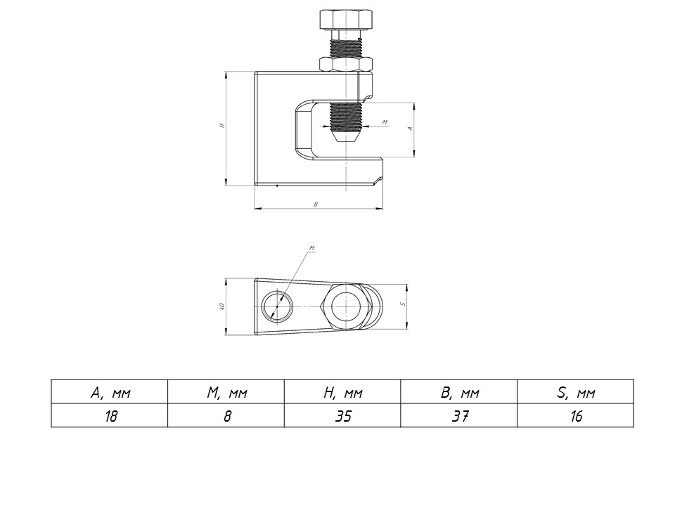 — Метрический размер резьбы (М.) 8.
