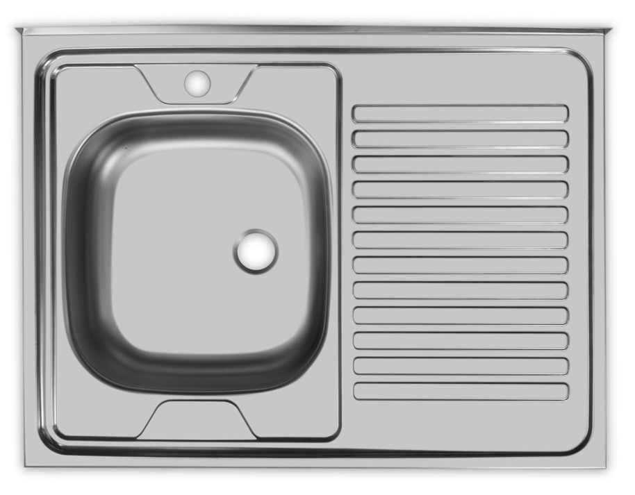 Чаша оборудована малым сливным отверстием (60 мм). Небольшое крыло послужит дополнительной рабочей поверхностью. Его используют для хранения грязной посуды, либо сушки уже вымытой посуды, чему способствует рельефный рисунок, в том числе, крыло можно использовать для разморозки продуктов или хранения фруктов/овощей перед приготовлением.