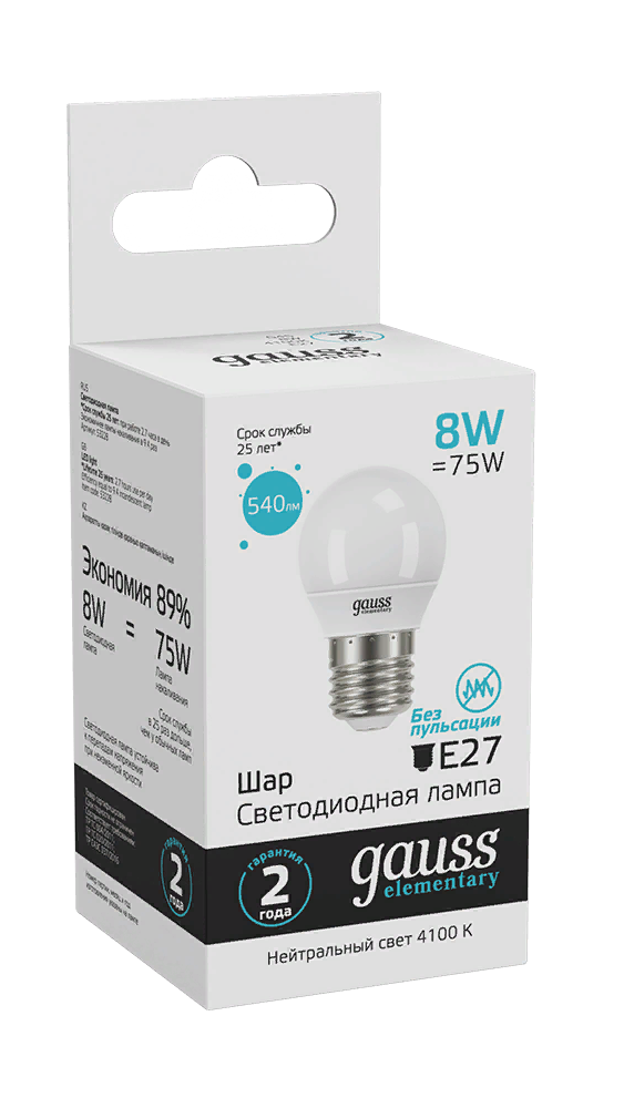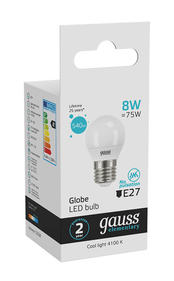 Светодиодные лампы Gauss Elementary — вечная классика, которая является энергосберегающей заменой обычным лампам накаливания. Равномерное распределение света создает зрительный комфорт в любом помещении.