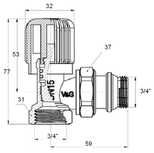 Вентиль радиаторный угловой V& G ручной регулировки ¾" VG-601202(Т.1/12). Применяется для изменения расхода жидкости в отопительных приборах с помощью ручного регулирования в трубопроводах хозяйственно-питьевого водоснабжения. Вентиль может применяться как в однотрубных, так и в двухтрубных системах отопления.