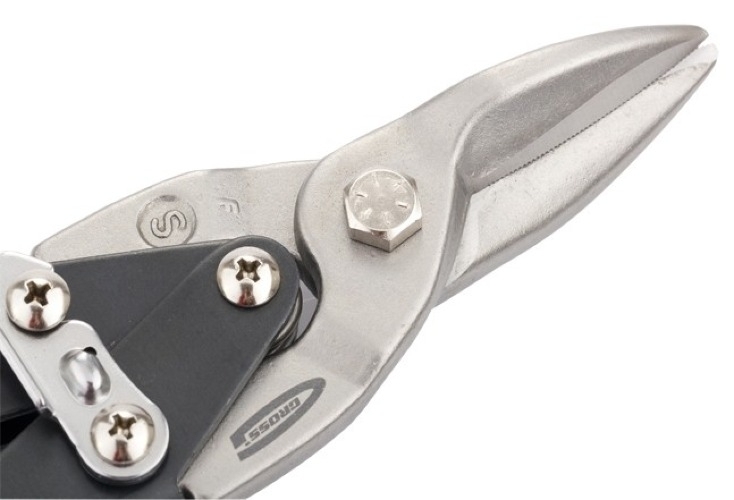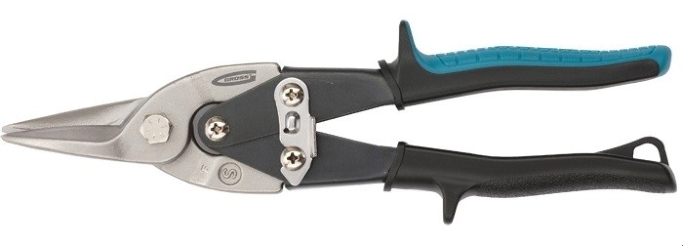 Ножницы по металлу торговой марки GROSS предназначены для точного прямого реза листового металла толщиной до 1,2 мм и нержавеющей стали толщиной до 0,7 мм. Рабочие части ножниц изготовлены из высоколегированной стали (CrMo), содержание молибдена и ванадия в ее составе придает необходимую жесткость и высокую твердость. Режущие губки проходят процесс индукционной закалки и имеют твердость 60–62 HRС. Ножницы общей длиной 250 мм оснащены эргономичными двухкомпонентными рукоятками, оригинальная форма которых минимизирует риск травм и обеспечивает удобство при длительных работах
