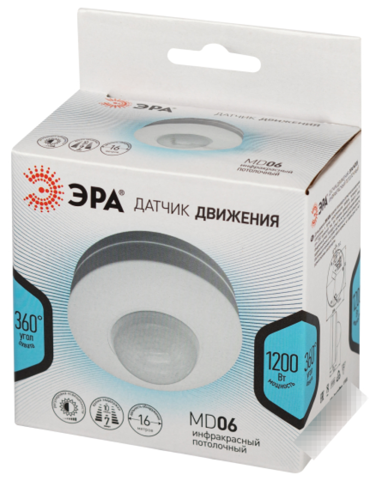 Датчики движения ЭРА MD 06 удовлетворят самые высокие требования к безопасности и надежности. Подарите себе и вашим близким спокойствие и уверенность с датчиками движения ЭРА!