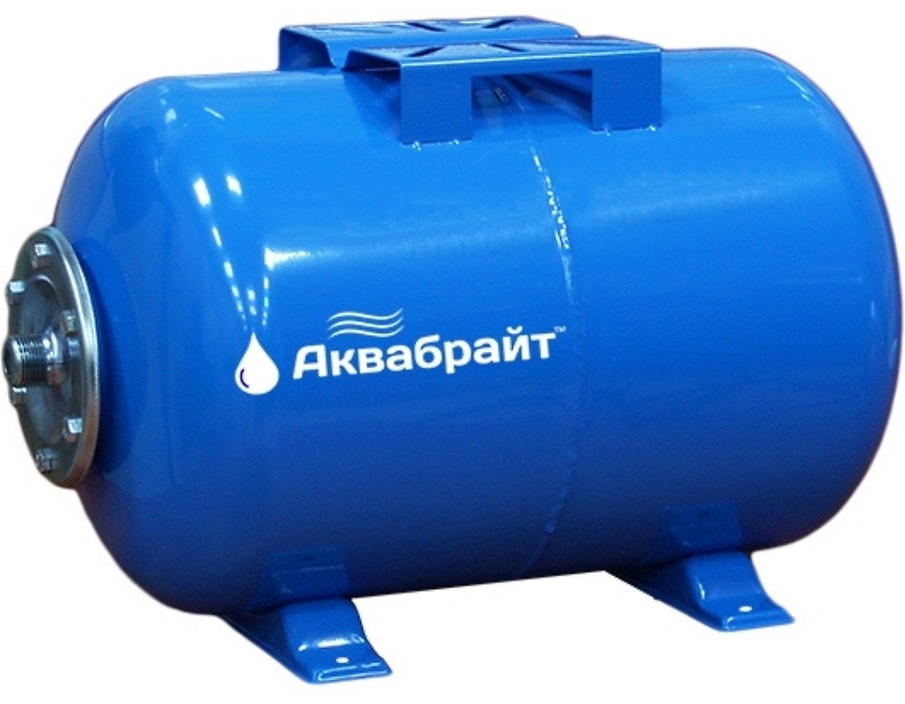 Конструкция гидробака Аквабрайт с эластичной диафрагмой разделяет среду, накапливая жидкость и создавая резервный запас. Резервуар из стали