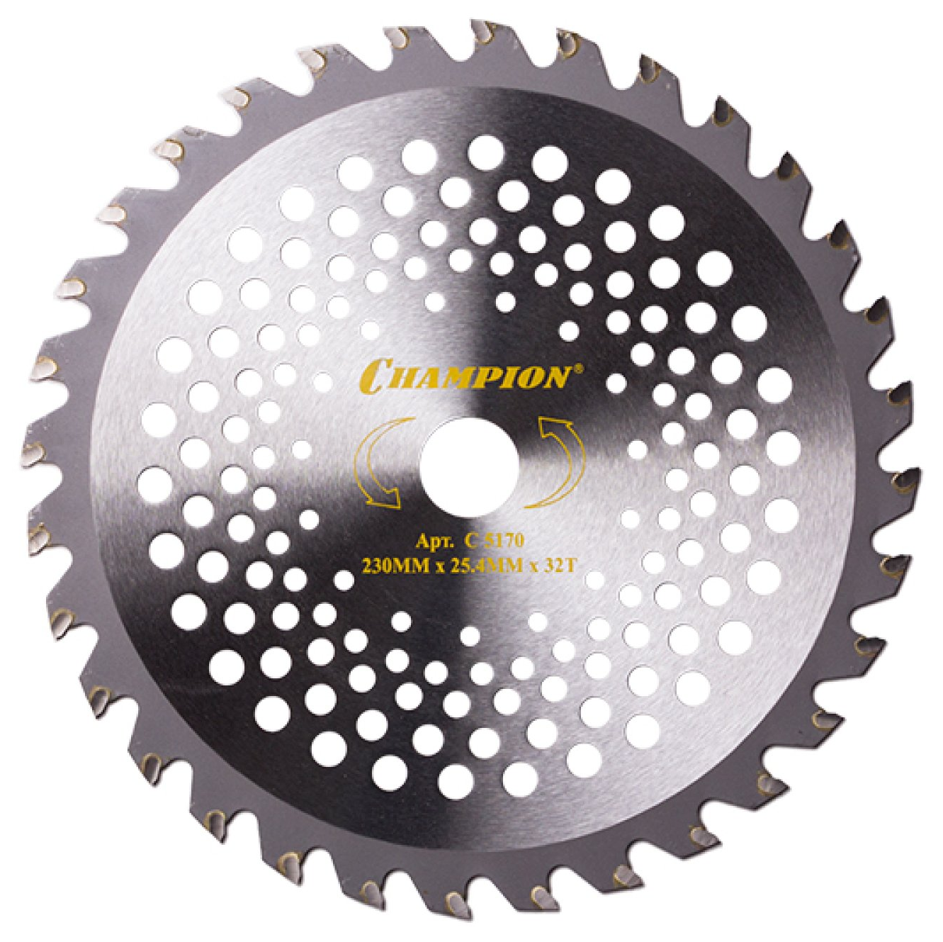Прочная конструкция из высококачественного сплава обеспечивает долговечность и устойчивость к деформациям. Нож для мотокосы Champion Strong легко справляется с нагрузками, сохраняя остроту лезвий после множества использований. Посадочный диаметр — 25.4 мм. Диаметр изделия — 230 мм. Количество зубьев — 32.