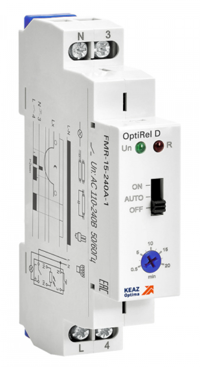 Реле КЭАЗ OptiRel D FMR-15-240А-1 реализуется в индивидуальной упаковке. Выполнено в корпусе из пластика. Цвет — белый.