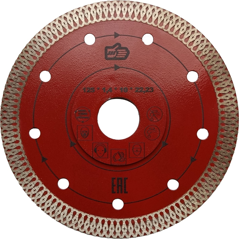 Диск алмазный 888 Турбо по керамограниту, сухой и влажный рез, диаметр 125мм, посадочный 22.23мм, высота сегмента 10мм, рез 1.4мм / расходные материалы и оснастка