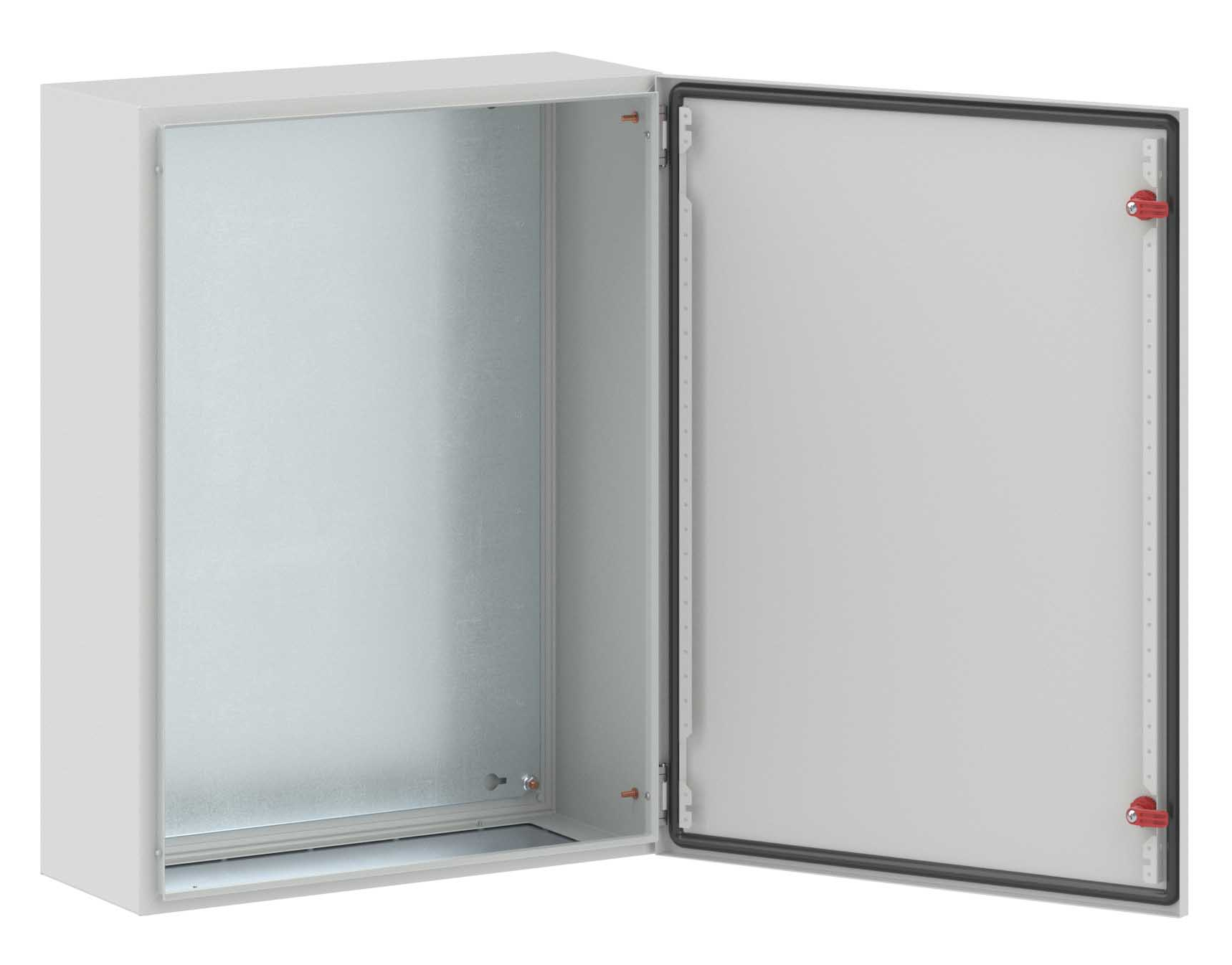 Сварные корпуса ST входят в линейку «RAM block». Эту серию отличает высокая ударопрочность (IK 10) и устойчивость к механическим повреждениям. Навесные корпуса ST со сплошной дверью используются для систем автоматизации технологических процессов. Корпуса обеспечивают размещенным внутри устройствам надежную защиту. Двери таких корпусов изготавливаются из металла толщиной 1,5 мм, а сам каркас — из металла толщиной 1,2 мм. На внутреннюю сторону двери наносится покрытие из вспененного полиуретана, который повышает качество герметизации. Загиб кромки корпуса предотвращает попадание во внутреннее пространство шкафа влаги и мусора, а производственные отверстия имеют специальные заглушки, благодаря чему достигается степень пыле- и влагозащиты корпуса — IP 65/IP 66. Трехступенчатая автоматизированная система окрашивания обеспечивает корпусам прочное покрытие, устойчивое к сколам и царапинам. По умолчанию в двери устанавливается замок под ключ с двойной бородкой 3 мм. Шкафы ST от ДКС отличаются сейсмоустойчивостью и вибростойкостью. Корпуса могут использоваться совместно с аксессуарами CE. Маркированная монтажная плата из оцинкованной стали толщиной 1,8 мм позволяет размещать внутри корпусов даже тяжелое оборудование. Габариты корпуса: высота — 800 мм, ширина — 600 мм, глубина — 250 мм.