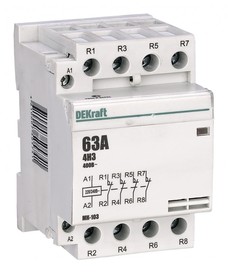 Модульный контактор DEKraft МК-103 — инструмент, используемый для коммутации и дистанционного управления системами освещения, кондиционирования, отопления и вентиляции.