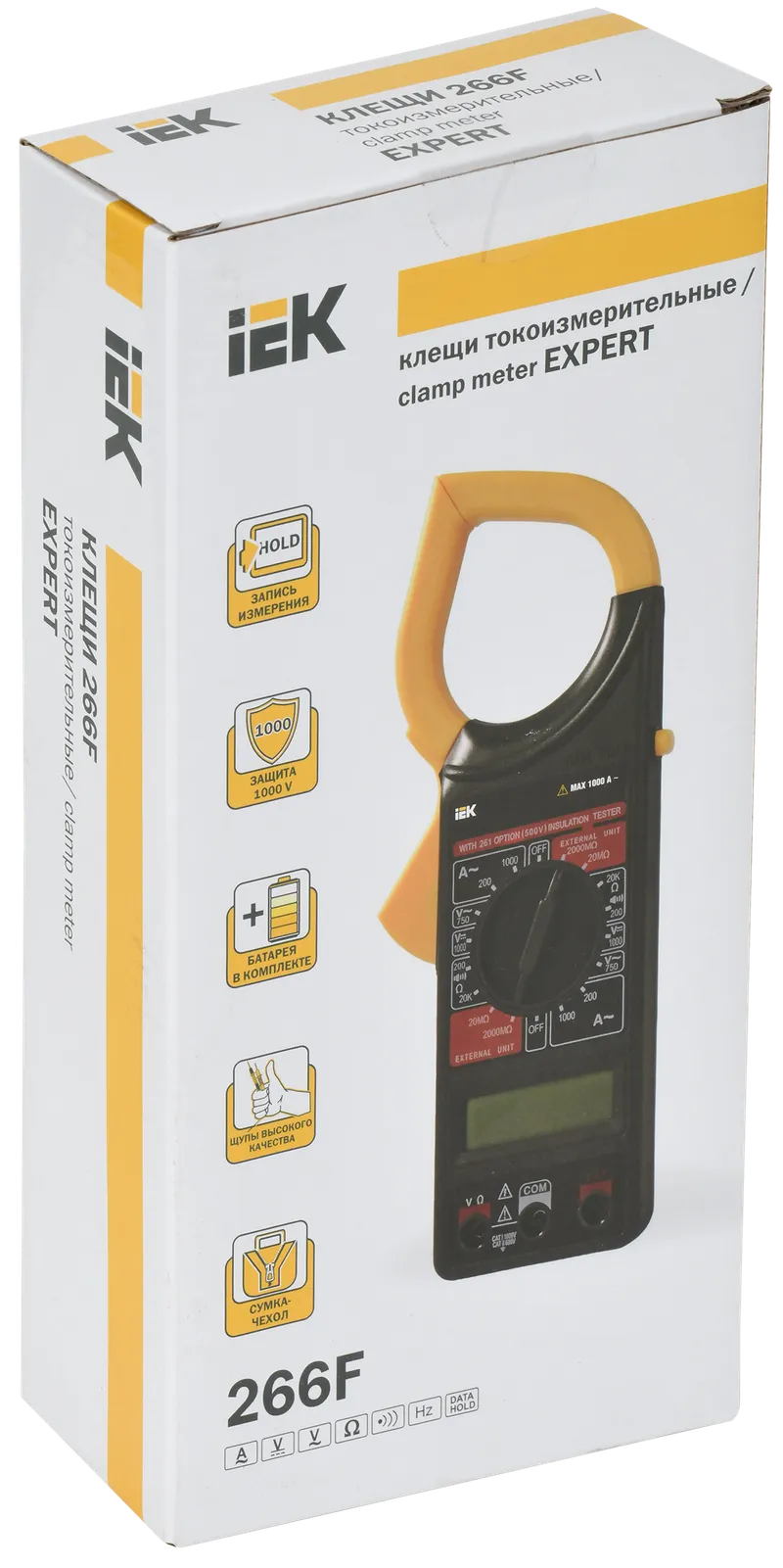 Мультиметр портативный цифровой IEK Expert M-266 °F клещи токоизмерительные — универсальный прибор, который поможет Вам провести необходимые измерения в электротехнических цепях! Мультиметр является незаменимым инструментом для электриков, электронщиков, автомехаников и других специалистов, работающих с электротехникой.