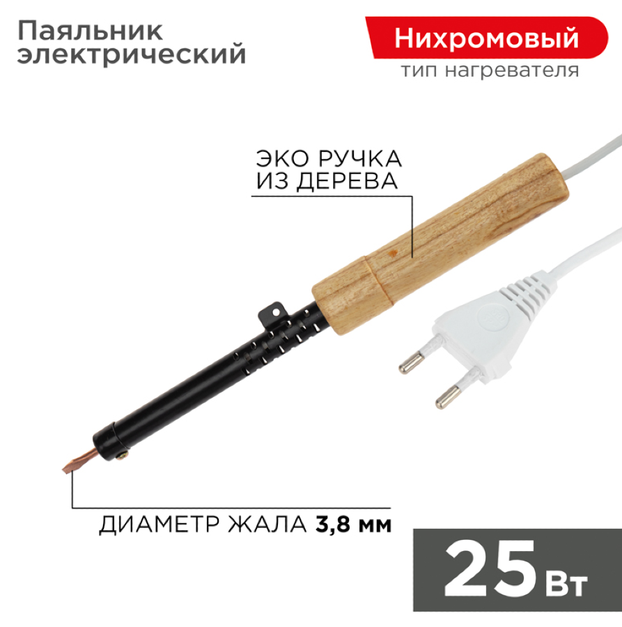 Паяльник с деревянной ручкой серии ЭПСН мощностью 25Вт REXANT предназначен для ручного монтажа/демонтажа электронных компонентов и других мелких деталей. Подходит как для любительского, так и для профессионального использования.