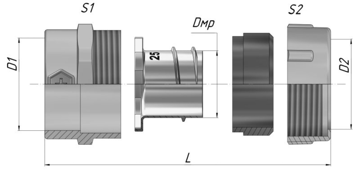 — Вн. диаметр / Макс. наружный диаметр металлорукава Dмр/D2, мм 19,3 / 28.