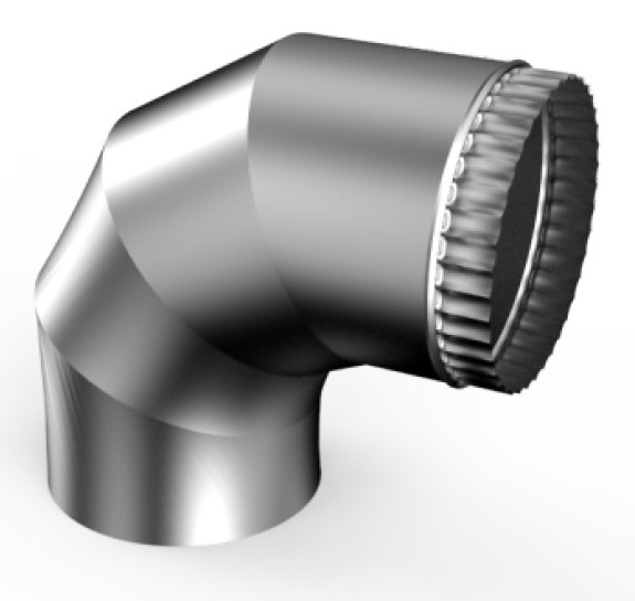 Используется для изменения направления дымового канала. Из нержавеющей стали AISI 430 толщиной 0,5 мм используются для дымоотводящих систем с начальной температурой исходящих газов до 300°C (рекомендованы для газовых котлов).