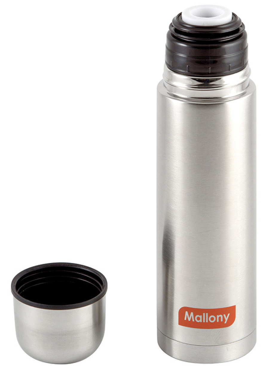 Термос для напитков Mallony Nuovo выполнен из нержавеющей стали, силикона и пластика. Цвет — серебристый. Объем — 500 мл. Емкость отличается прочностью, устойчивостью к ударам, возникновению коррозии. Имеет компактный размер, небольшой вес и удобный дизайн для путешествий, походов или работы.