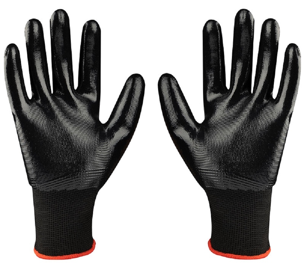 Перчатки с нитриловым покрытием, полный облив, маслобензостойкие, размер L. Класс вязания 15. Перчатки имеют полное покрытие ладони. Материал из которого изготовлены перчатки это полиэстер и нитрил. Упаковка картонный хеддер. Используются для защиты от химикатов, от влаги, от сырости, от масел и смазок, от воды и растворы нетоксичных веществ.