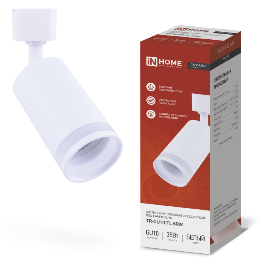Трековое освещение IN HOME TR-GU10-TL выделяется своими характеристиками: