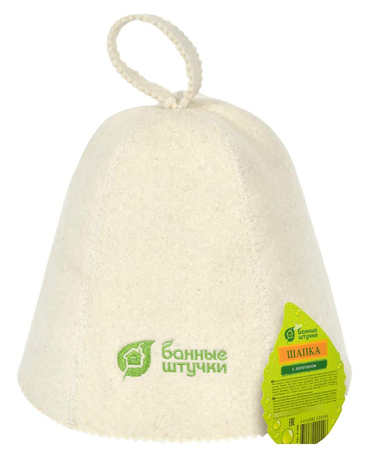 Банная шапка реализуется в индивидуальной упаковке. Материал — войлок. Цвет — белый. Пол — унисекс.
