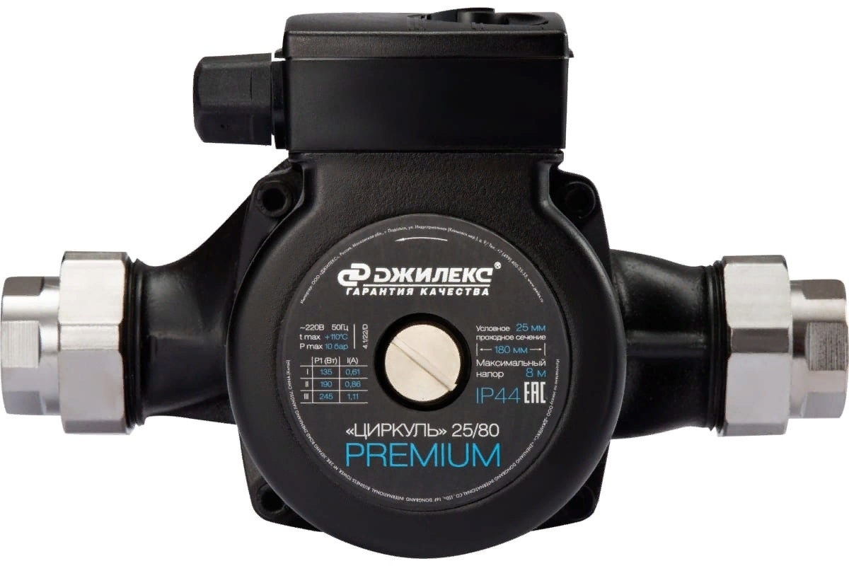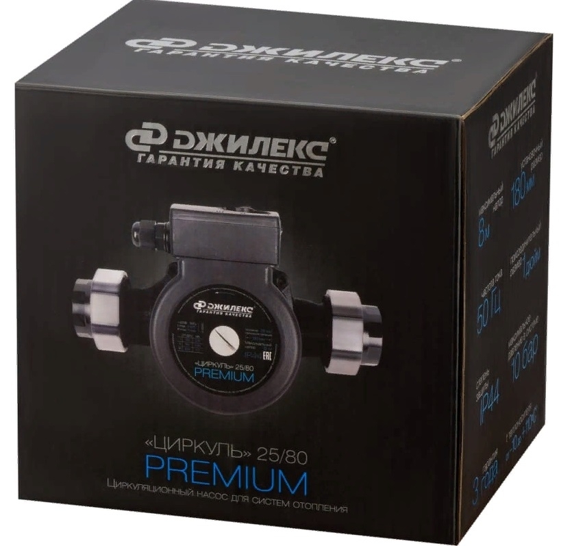 Циркуляционный насос 25/80 PREMIUM от компании ООО«ДЖИЛЕКС» предназначен для использования в системах отопления загородных домов и коттеджей. Насос обеспечивает циркуляцию теплоносителя, распределяя тепло по всем помещениям. Присоединительный размер гаек — 1 дюйм (25 мм). Максимальный напор достигает 8 метров водяного столба, а расход теплоносителя доходит до 110 л/мин.