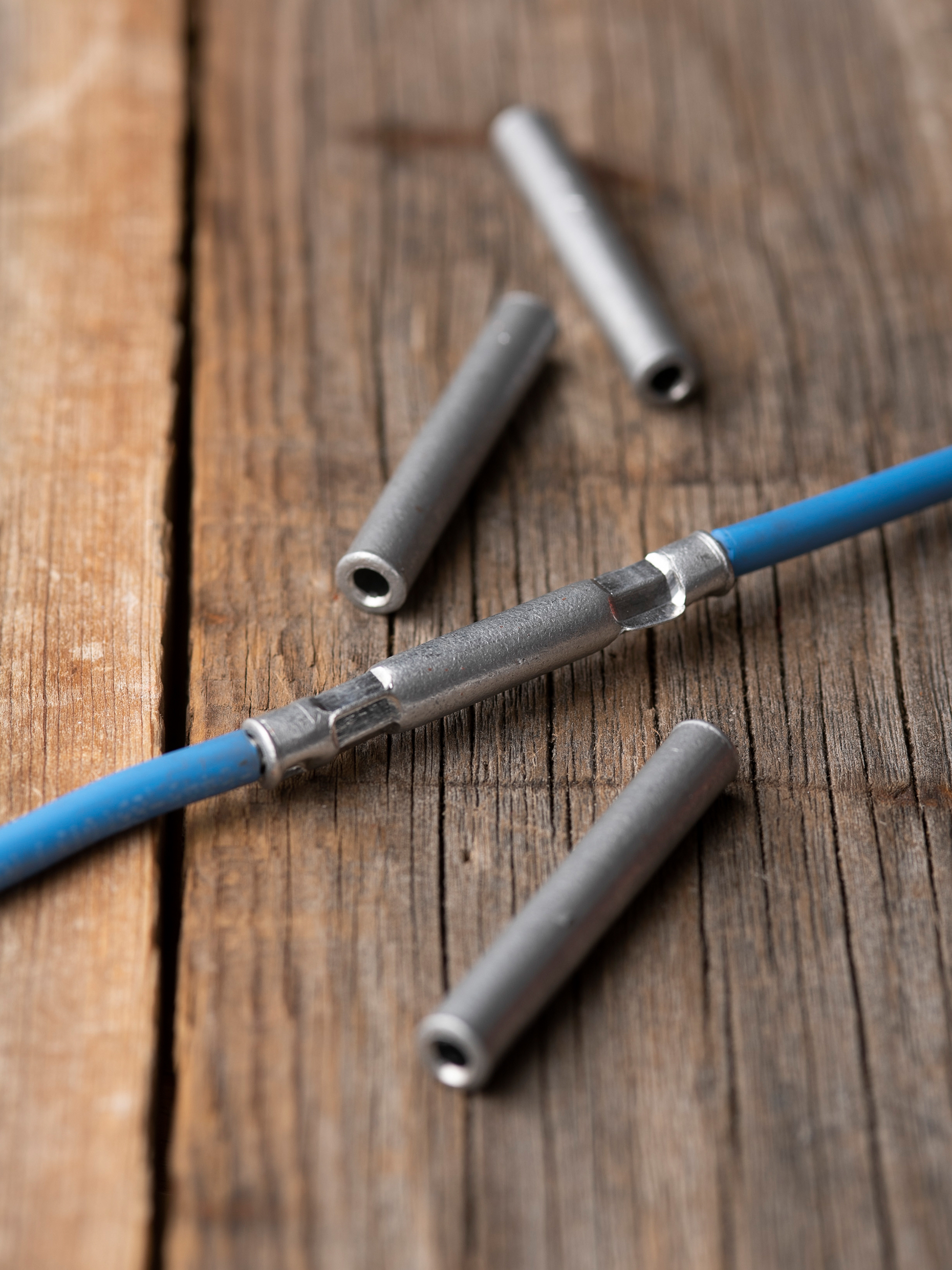 Гильзы алюминиевые EKF PROxima изготавливаются из цельнотянутой алюминиевой трубы марки АД1 и имеют сквозную конструкцию. При соединении посредством гильз секторные жилы перед опрессовкой должны быть предварительно скруглены.
