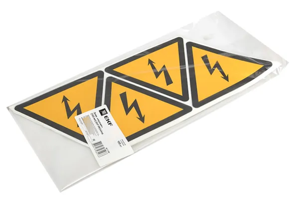 Любое место, которое представляет опасность посторонним людям, должно быть обозначено соответствующим образом. В этом поможет самоклеящаяся этикетка EKF «Молния».