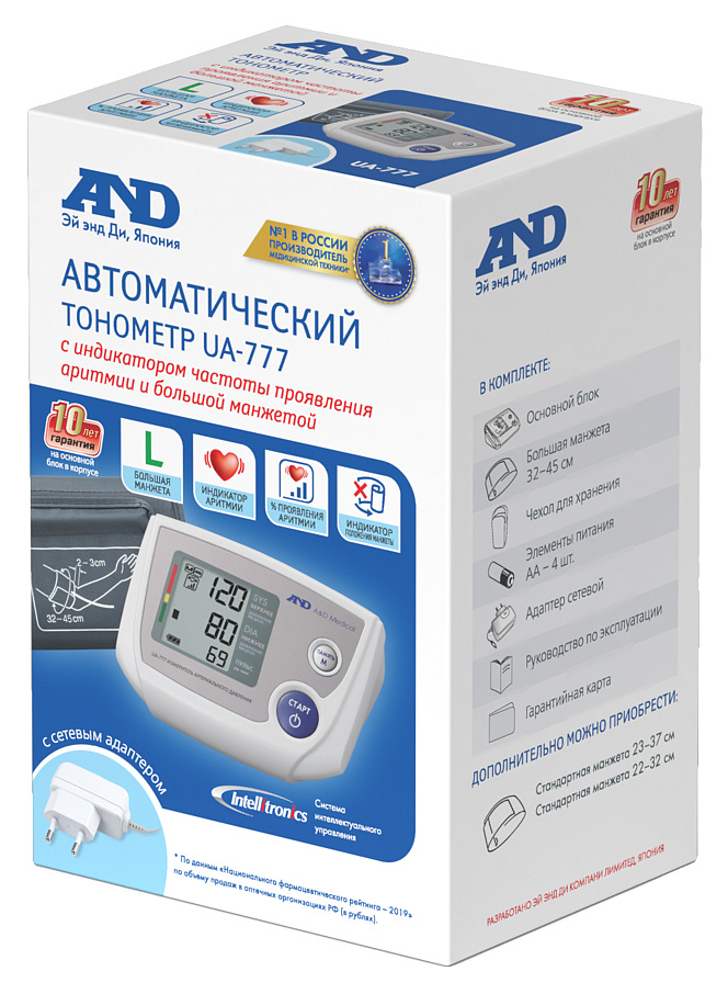 Для проведения некоторых медицинских исследований дома существует множество различных устройств, приспособлений и аксессуаров. К ним также относится и тонометр A& D UA-777L автоматический, с адаптером. Он предназначен для измерения артериального давления и частоты пульса. Применяется в качестве индивидуального средства контроля, либо динамических наблюдений в медицинских организациях.