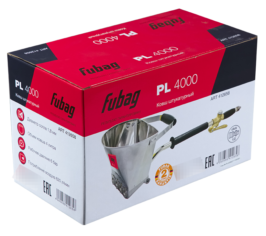 Ищете профессиональный инструмент для ремонтных задач? Ковш штукатурный Fubag Hopper PL4000 оптимален для нанесения растворов на вертикальные поверхности.
