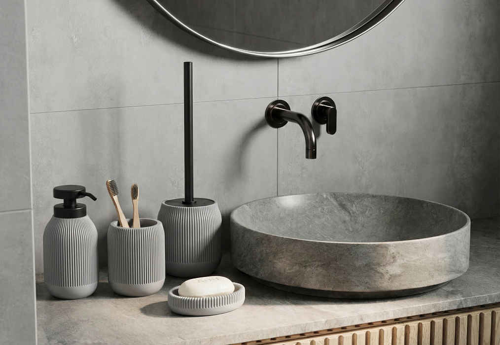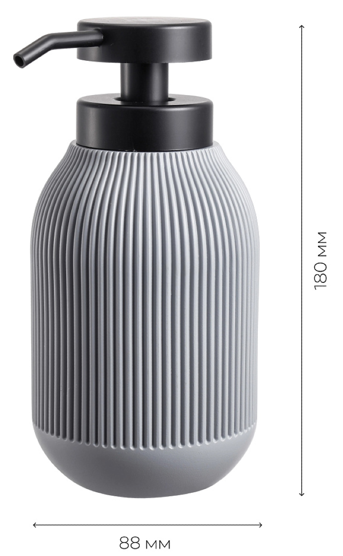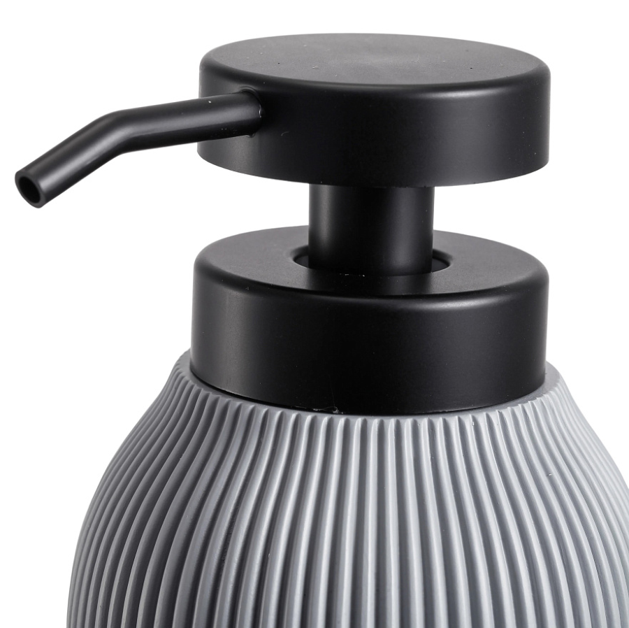 Дозатор для жидкого мыла из коллекции BONNA выполнен из прочного полирезина в пепельно-сером цвете с мягкой рифлёной фактурой. Сдержанный оттенок и минималистичный дизайн гармонично вписываются в современную ванную, сочетаясь с белыми, серыми и деревянными тонами. Удобная помпа обеспечивает экономный расход, а влагостойкий материал легко моется и рассчитан на ежедневное использование.