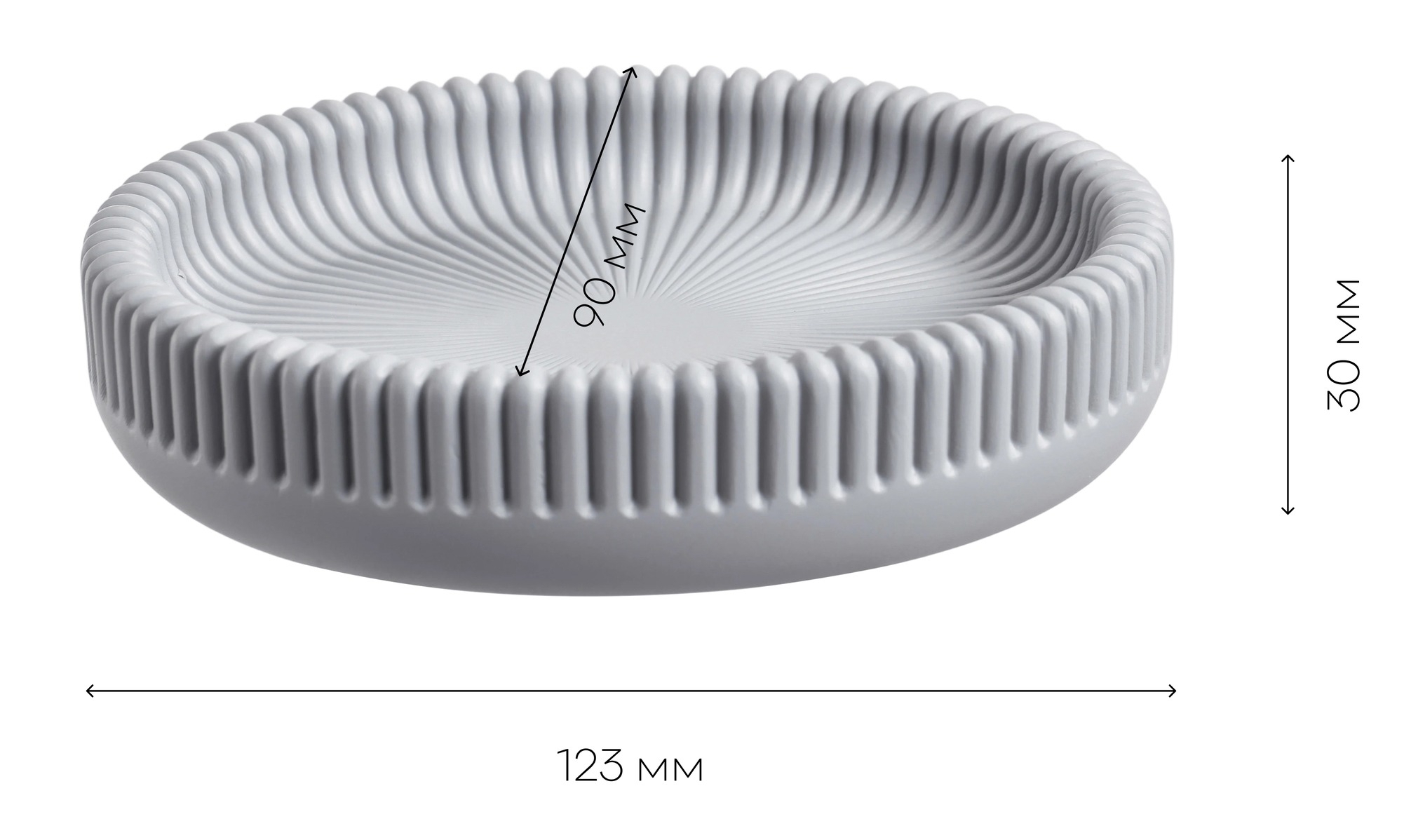 Мыльница из коллекции BONNA выполнена из прочного полирезина в пепельно-сером цвете с мягкой рифлёной фактурой.