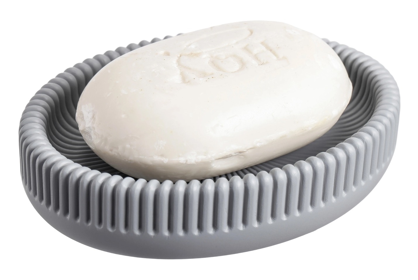Ребристое дно помогает мылу быстрее высыхать и не размокать, а влагостойкий материал легко моется и подходит для ежедневного использования.
