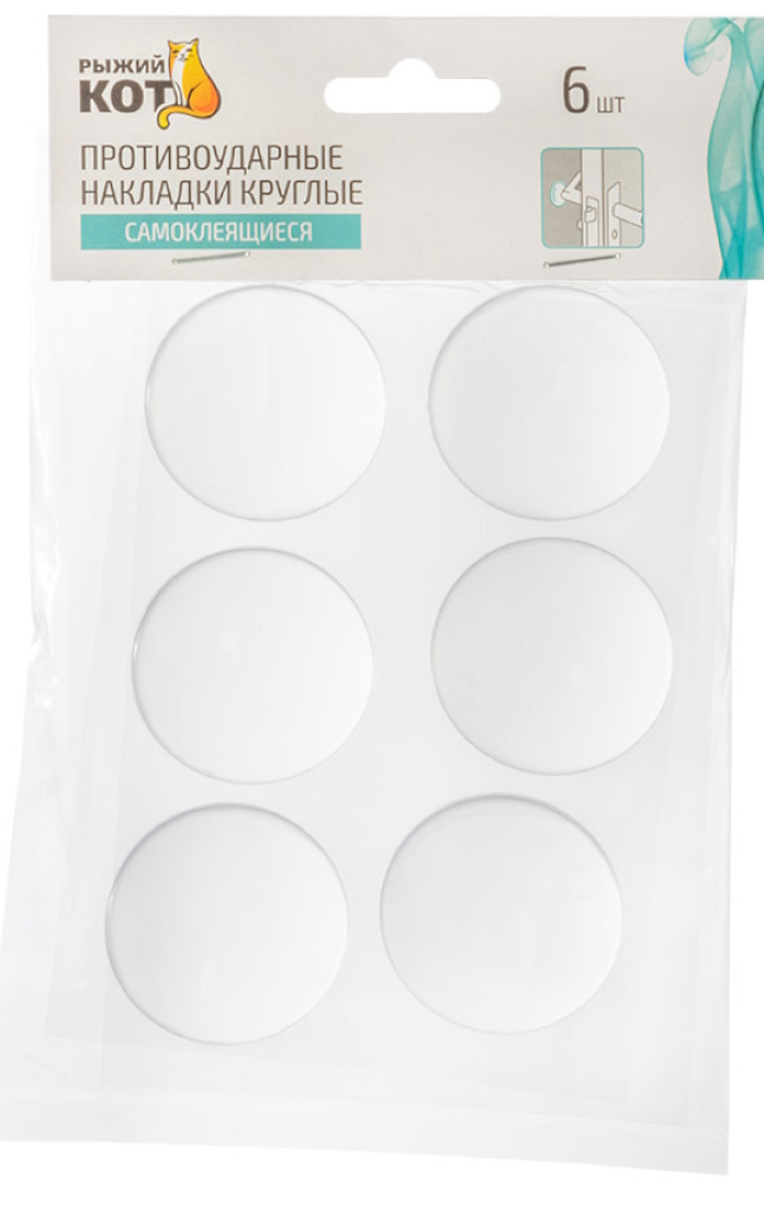 Противоударные накладки «Рыжий Кот» представляют собой круглые прозрачные демпферы на клейкой основе. В наборе вы получаете 6 штук, что позволяет обеспечить защиту сразу нескольких поверхностей. Предназначены для защиты стены от удара ручки при открывании двери. Легко устанавливаются с помощью самоклеящейся основы. Ограничитель для двери поможет избежать шума от удара при резком открывании двери.