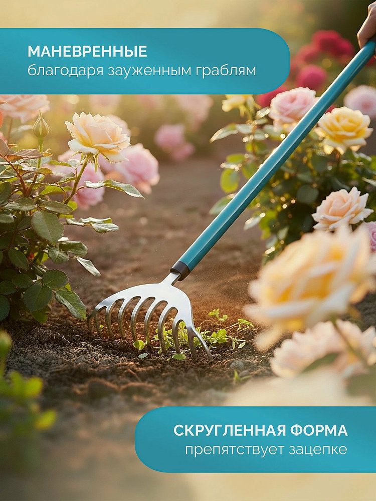 Широкий спектр применения: садовые грабли металлические подходят для работы с листьями, травой и почвой.
