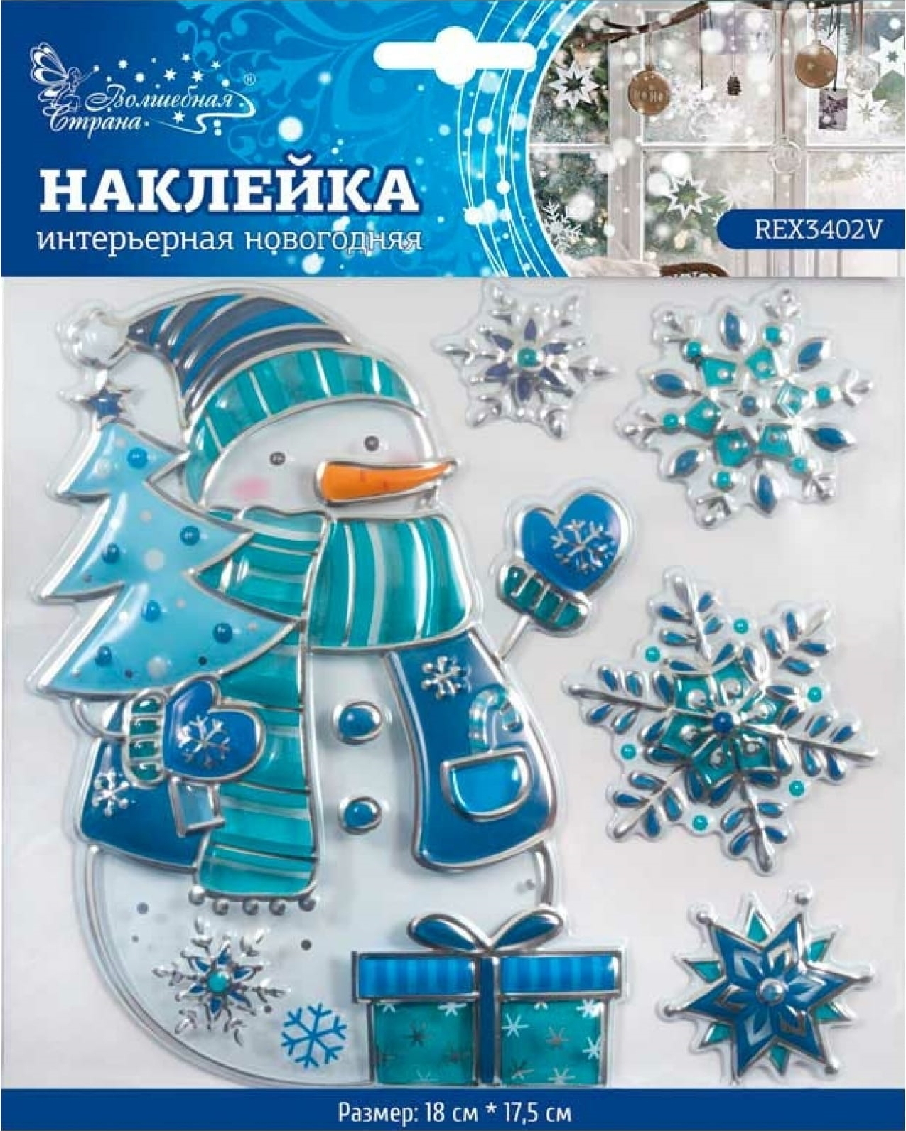 Наклейка новогодняя Волшебная Страна REX3402V реализуется в индивидуальной упаковке. Материал — ПВХ. Размер — 18×17.5 см.
