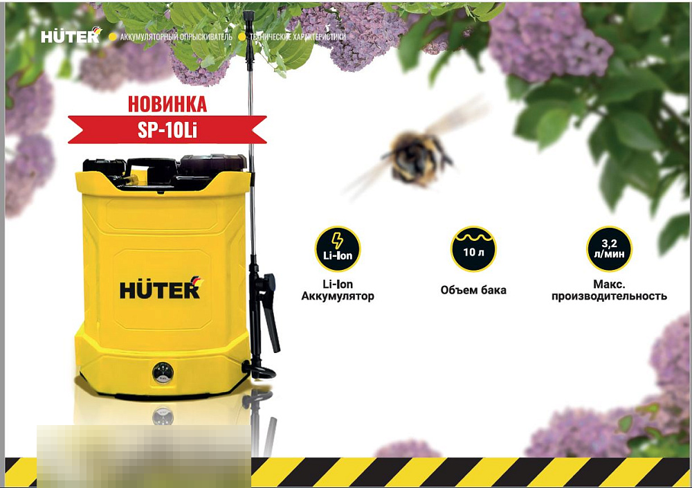 Ищете эффективное решение для ухода за растениями? Опрыскиватель аккумуляторный Huter SP-10Li с баком 10 литров обеспечивает равномерное распыление жидкостей для защиты от сорняков.