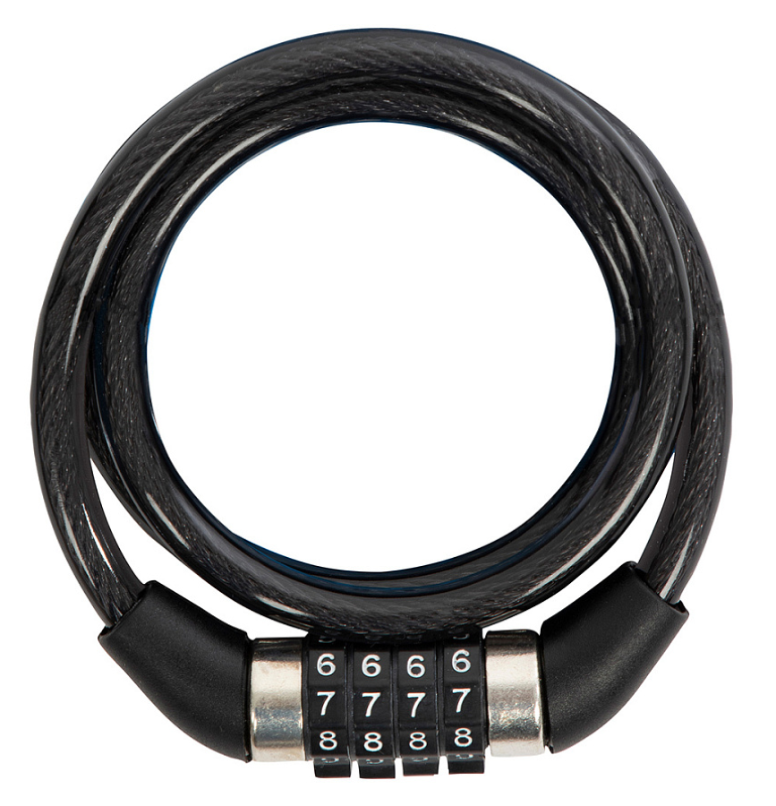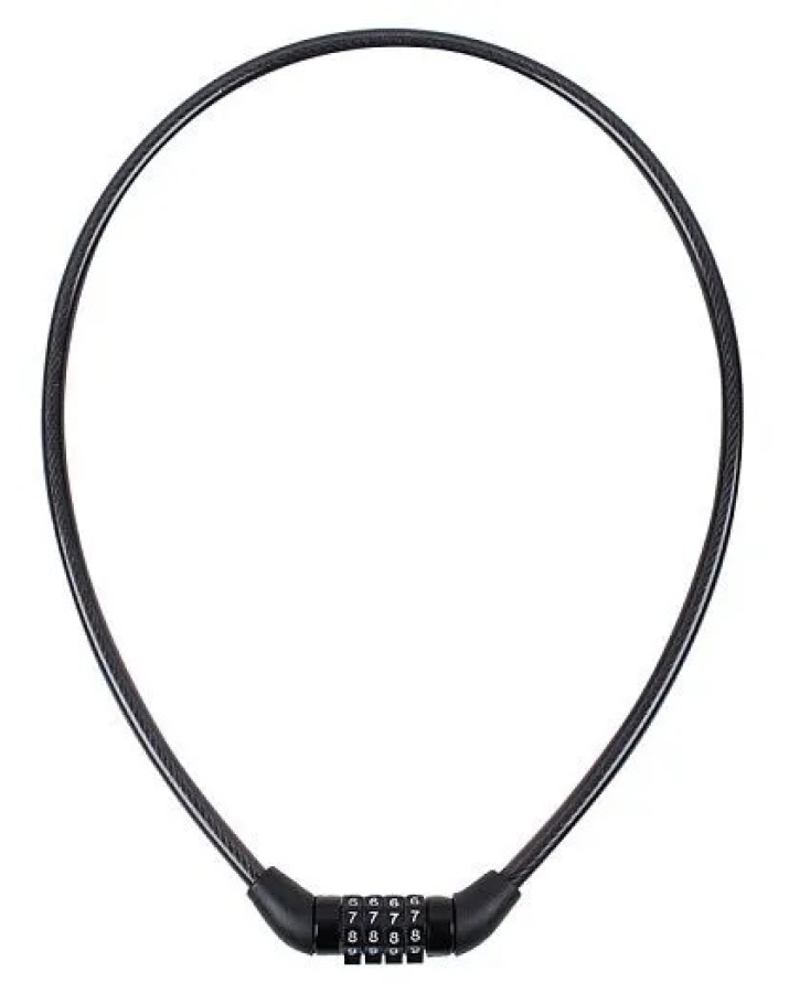 Замок велосипедный представляет собой стальной трос в полимерном чехле. Он достаточно гибкий и устойчивый к перекусыванию. Материал защищает от влаги и царапин, сохраняя внешний вид аксессуара безупречным.