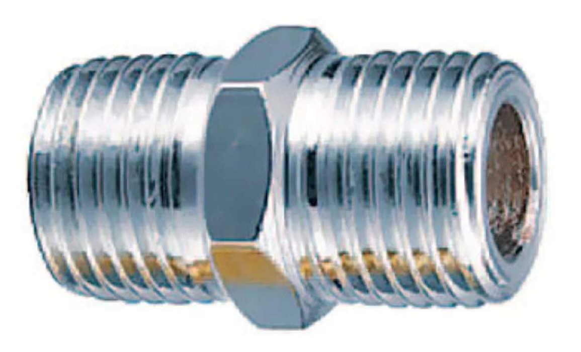Переходник предназначен для соединения выхода компрессора со шлангом пневмоинструмента. Переход резьбы: внешняя ¼"(папа) — внешняя ½» (папа).