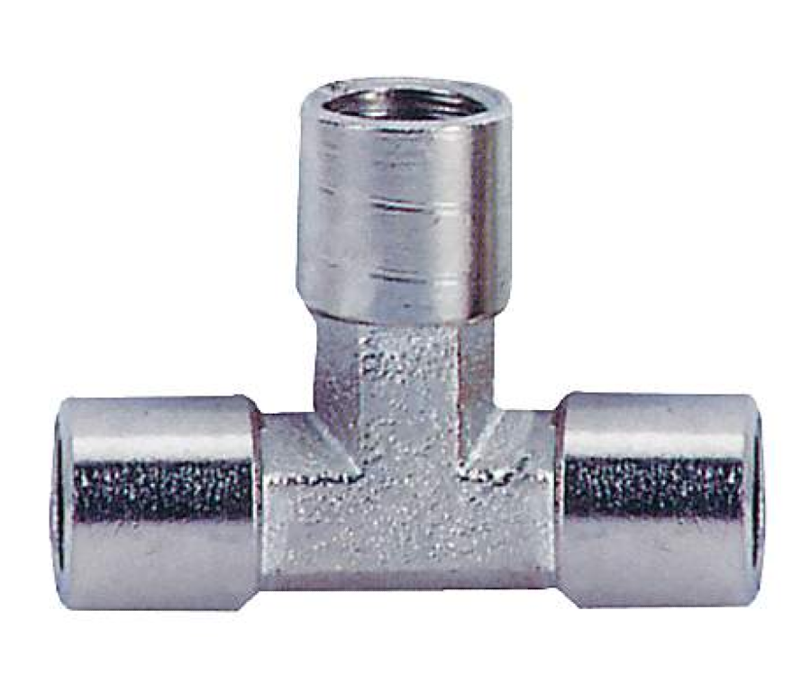 T-образный переходник (тройник) позволяет подсоединить к пневмомагистрали дополнительный участок.