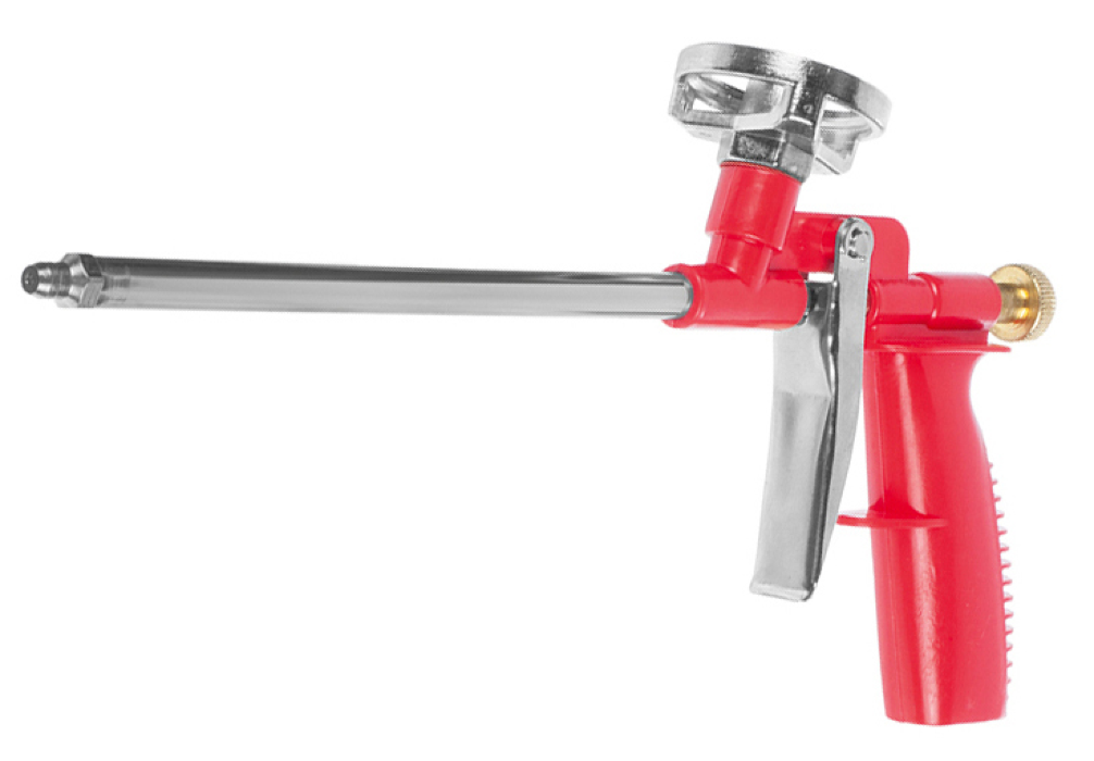 Пистолет для монтажной пены с пластиковым корпусом и рукояткой с алюминиевым адаптером, металлический регулировочный винт.