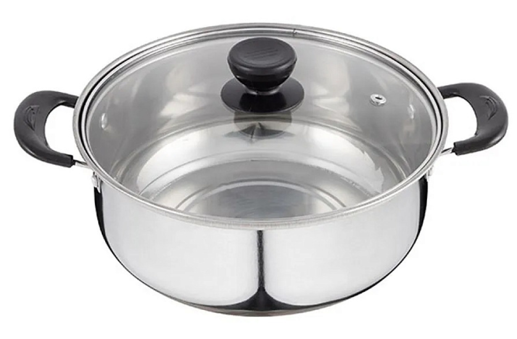 Крышка стальной кастрюли Leonord Promo из жаропрочного стекла позволяет контролировать процесс приготовления без потери температуры. Ручки из бакелита гарантируют безопасный и комфортный контакт с поверхностью.
