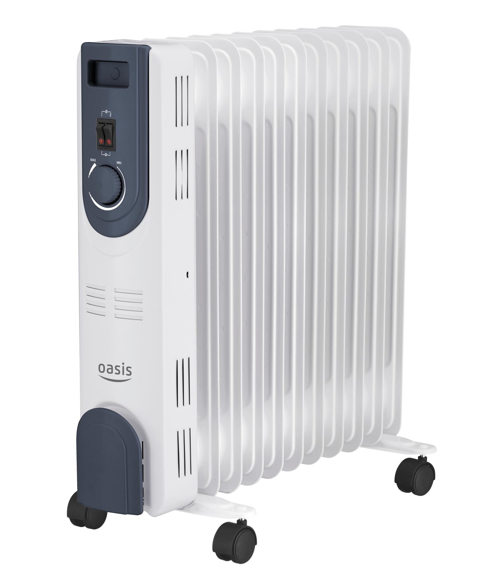 Радиатор Оазис OT-25 отлично подходит для обогрева жилых помещений в холодное межсезонье, а также подсобных помещений, не подключенных к отоплению. Радиатор имеет три ступени мощности, максимум составляет 2.5 кВт.