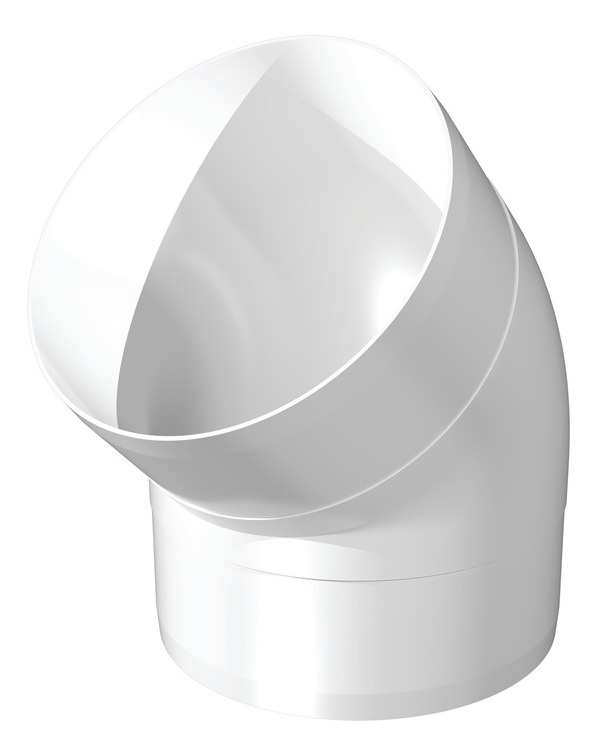 Отвод воздуховода Эра 12,5ККП 45° предназначен для соединения двух пластиковых каналов сечением 125 мм между собой под углом 45 градусов. Воздуховоды вставляются внутрь соединителя с двух сторон. Является одним из элементов пластиковой вентиляции для квартиры, дома и др.