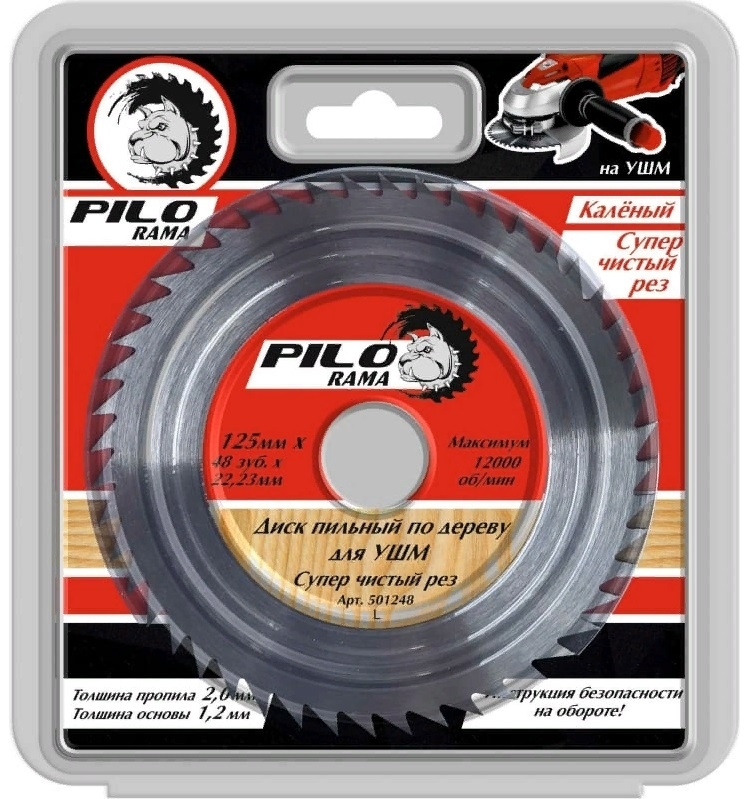 Диск пильный по дереву для УШМ Pilorama 501248 предназначен для угловых шлифовальных машин. Применяется для ровного и чистого пиления древесины, фанеры, ДВП, ДСП. Диск оснащен 48 зубьями, специальная конструкция