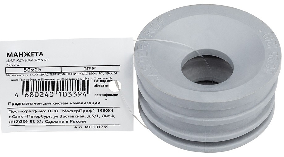 Манжета для унитаза Masterprof / Мастерпроф для канализации, из резины серая, на диаметр слива 25мм / сантехника