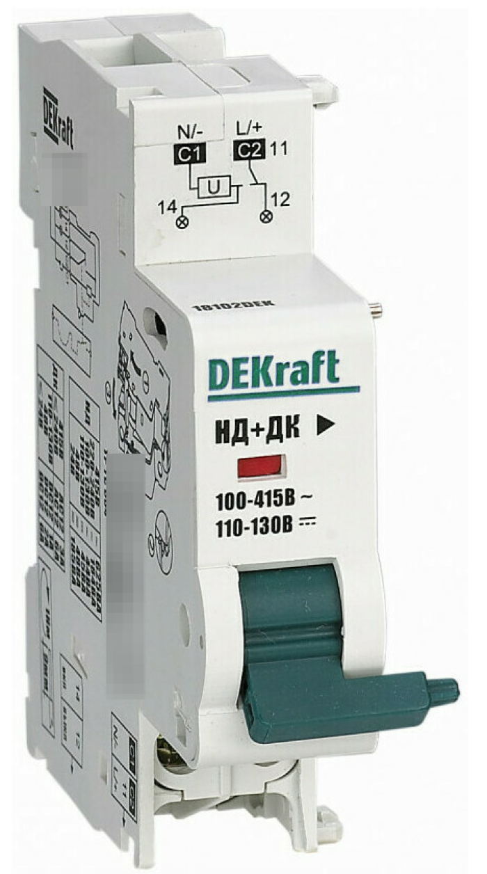Эксплуатация электрооборудования, независимо от его назначения, невозможна без использования некоторых дополнительных решений. К ним относится и расцепитель DEKraft независимый. Устройство обеспечивает дистанционное отключение автоматического выключателя, присоединение к аппарату слева.